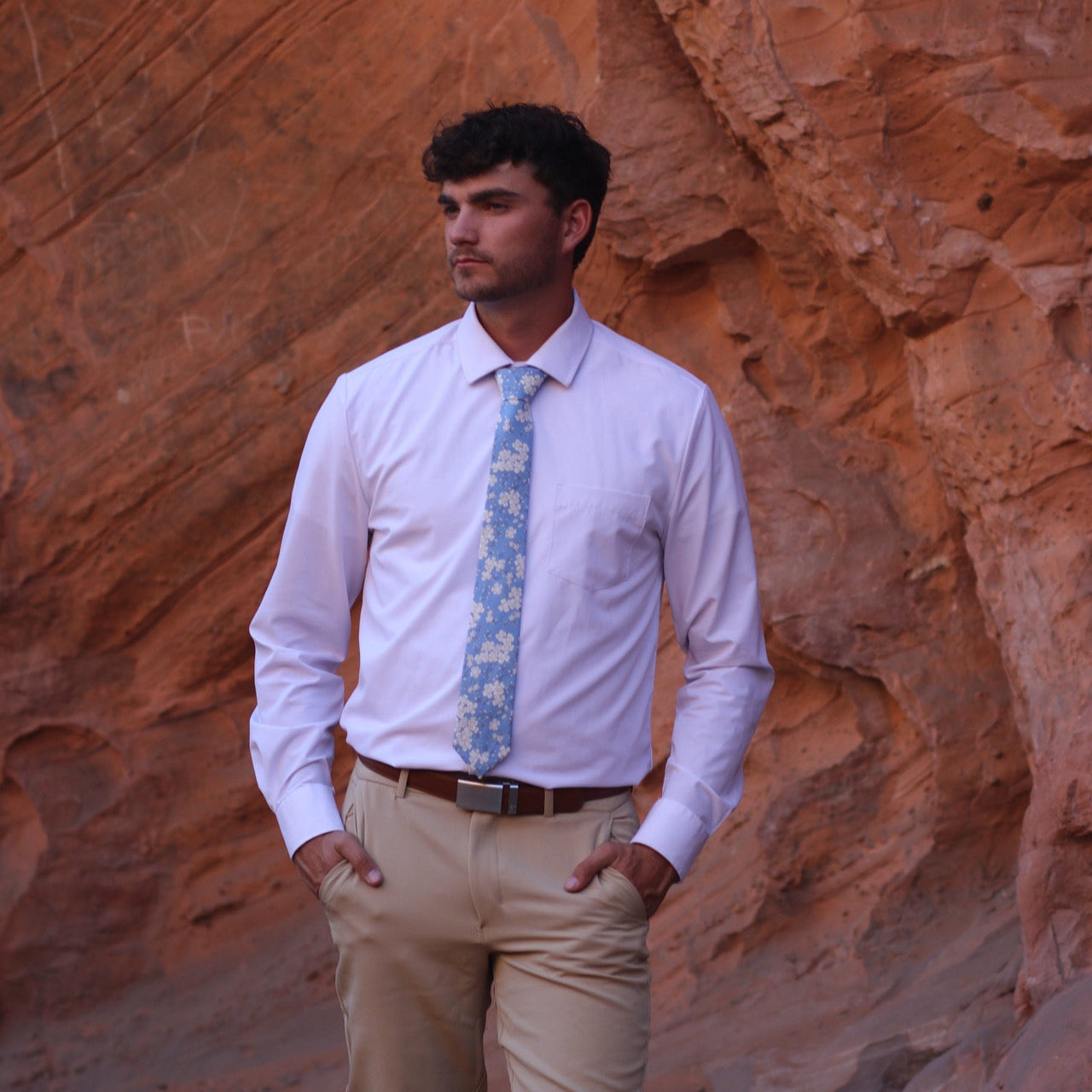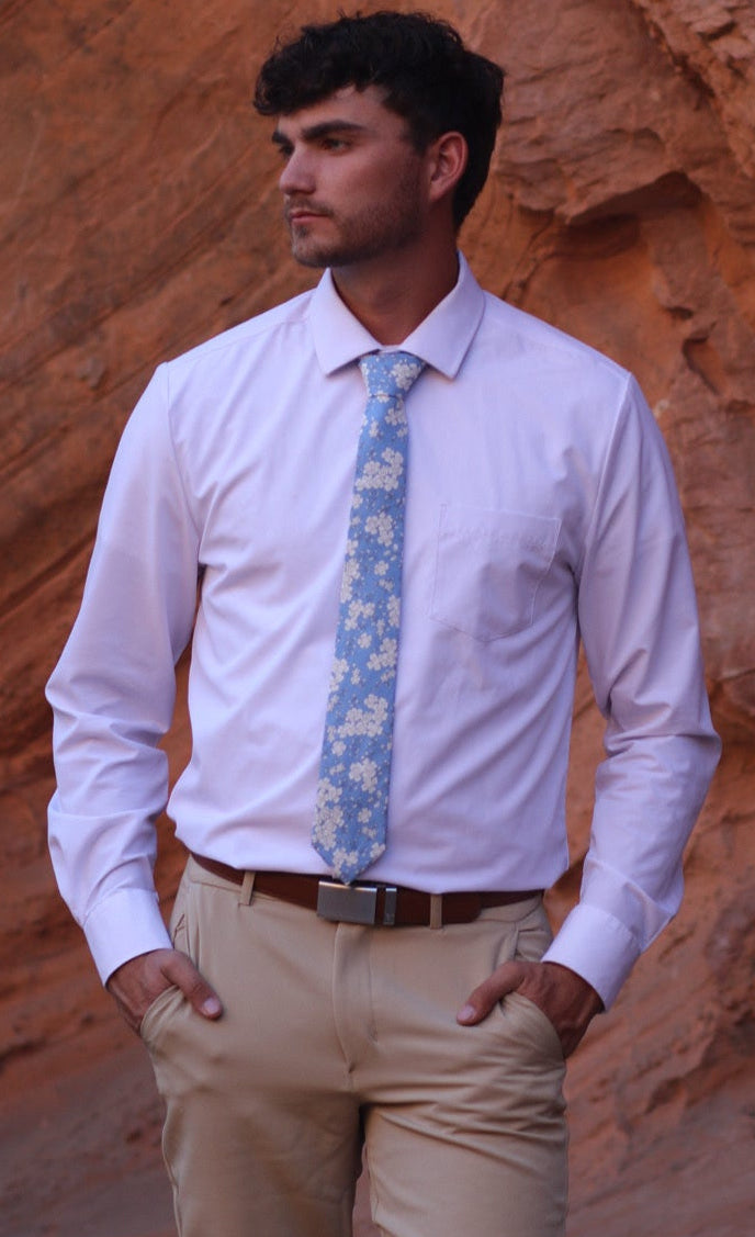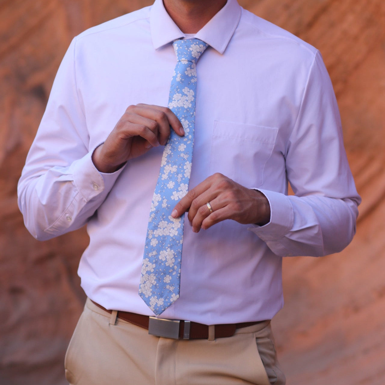 Bold and vibrant, our sky blue floral tie adds a refreshing pop of personality, bringing charm and elegance to your outfit. All of our ties are made with premium materials that promise comfort, durability, and style that lasts all day long.
